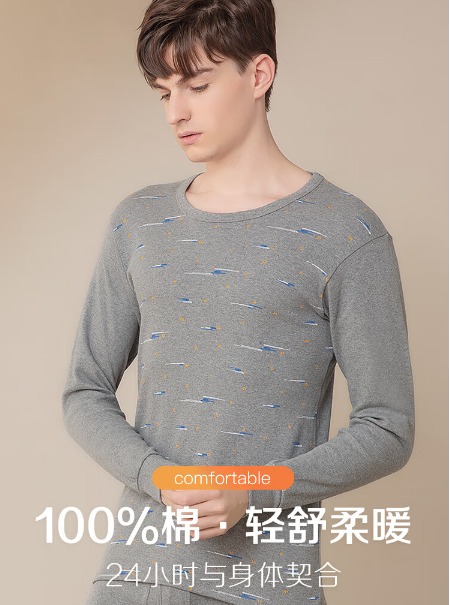A205 红豆 红豆内衣男纯棉秋衣秋裤套装男全棉印花薄款棉毛衫棉毛裤